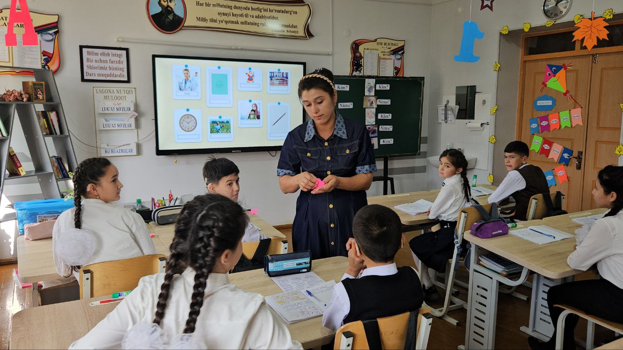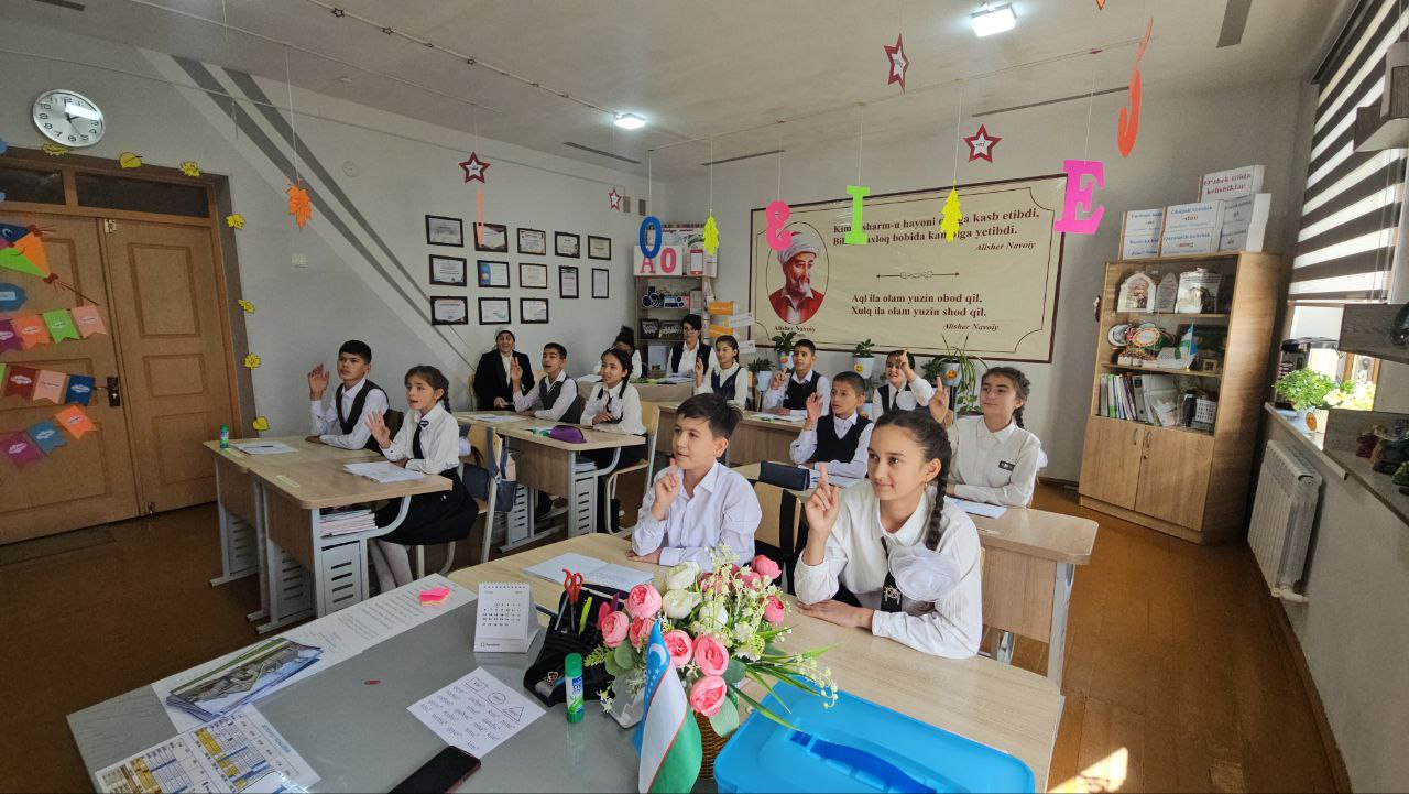 Xorazm viloyati Urganch shahridagi Alohida ta'lim ehtiyojlari bo'lgan (kar va zaif eshituvchi) bolalar uchun ixtisoslashtirilgan 32-sonli maktab-internatining nutqiy muloqot fani o'qituvchisi Roziyajon Shomuradova 5 "A"- sinfda "Kim? va nima? so'rog'iga javob bo'luvchi so'zlar" mavzusida ochiq dars o'tkazdi. Darsda barcha o'quvchilar faol qatnashdi. Dars davomida o'quvchilarning diqqatini jamlovchi turli xil o'yinlardan foydalanildi. Topshiriqlar orqali o'quvchilarning yozish ko'nikmasi shakllanib, nutqi ustida ham ishlandi.