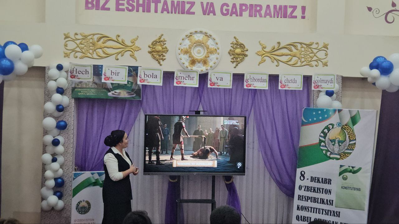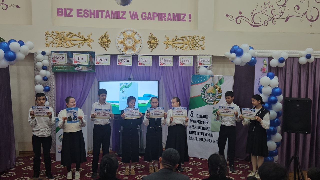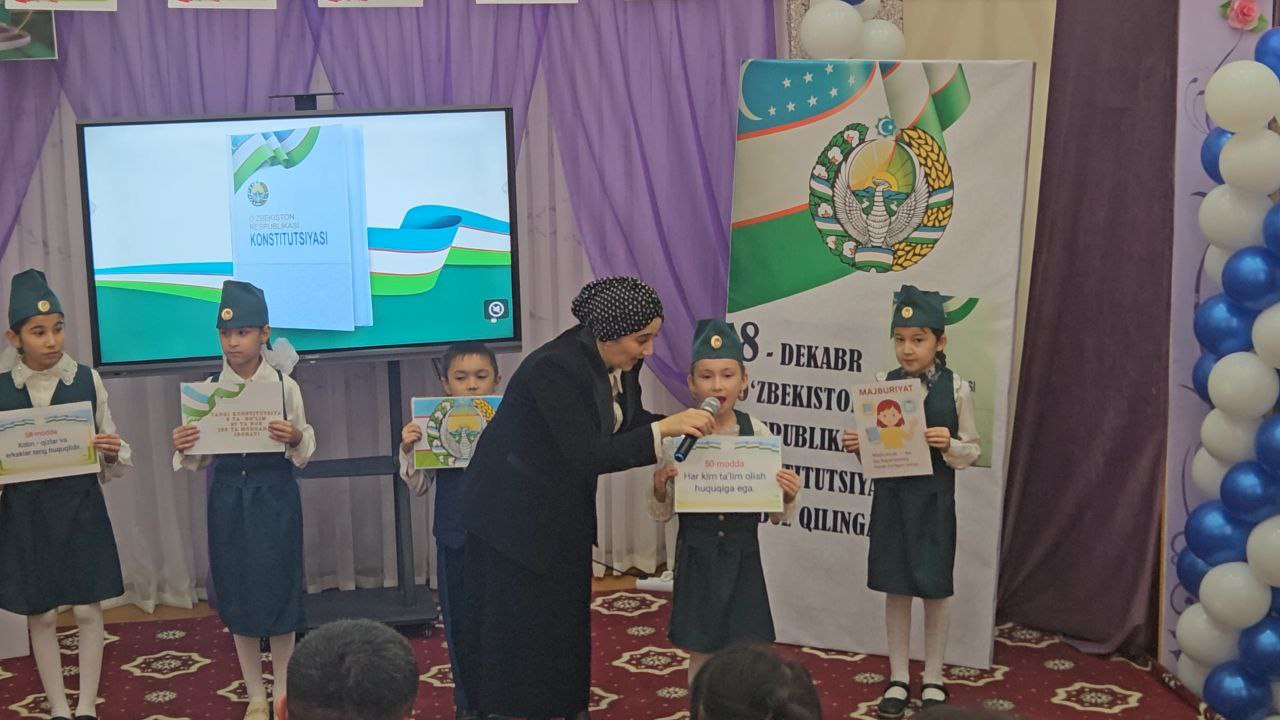 Xorazm viloyati Urganch shahridagi Alohida ta'lim ehtiyojlari bo'lgan (kar va zaif eshituvchi) bolalar uchun ixtisoslashtirilgan 32-sonli maktab-internatida 8-dekabr O'zbekiston Respublikasi Konstitutsiyasi qabul qilingan kun munosabati bilan "Konstitutsiya - huquqlarimiz kafolati!" mavzusida tadbir bo'lib o'tdi. Tadbirda o'quvchilar O'zbekiston Respublikasi Konstitutsiyasi haqida she'rlar, unga kiritilgan o'zgarishlar, moddalari va qonunlar tarixi haqida ma'lumot berdilar.