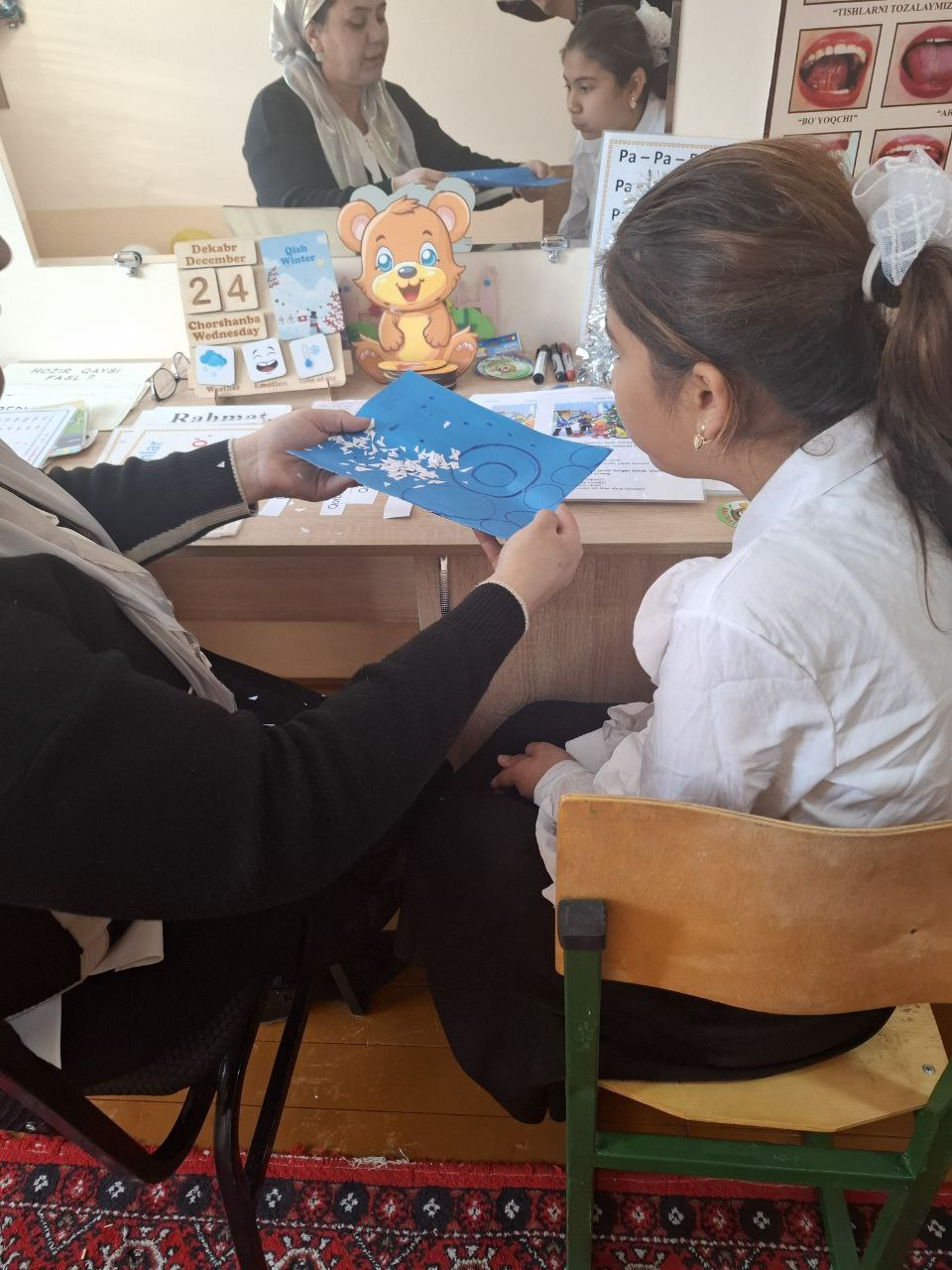 Xorazm viloyati Urganch shahridagi Alohida ta'lim ehtiyojlari bo'lgan (kar va zaif eshituvchi) bolalar uchun ixtisoslashtirilgan 32-sonli maktab-internatning yakka mashg'ulot fani o'qituvchisi X.Navruzova tomonidan 2-B sinf o'quvchisi Madrimova Ruzagul Maqsud qizi bilan birgalikda "Yangi yil tabrigi. N va M tomushlari" mavzusida ochiq dars tashkil qilindi. Ochiq darsda o'quvchiga yangi bilim berildi, tovushni farqlash uchun bayram bilan bog'liq turli xil o'yinlardan foydalandi. Darsda o'quvchi faol qatnashdi.
