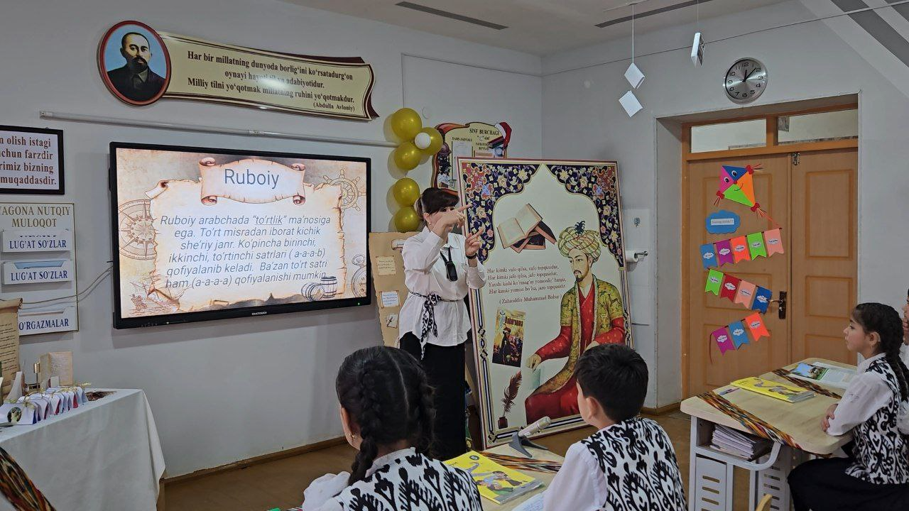2026-yil 11-fevral kuni 32-sonli maktab-internatning 5-“A” sinfida adabiyot fanidan o‘qituvchi D. Ibadullayeva tomonidan “Zahiriddin Muhammad Bobur ruboiylari” mavzusida ochiq dars tashkil etildi.